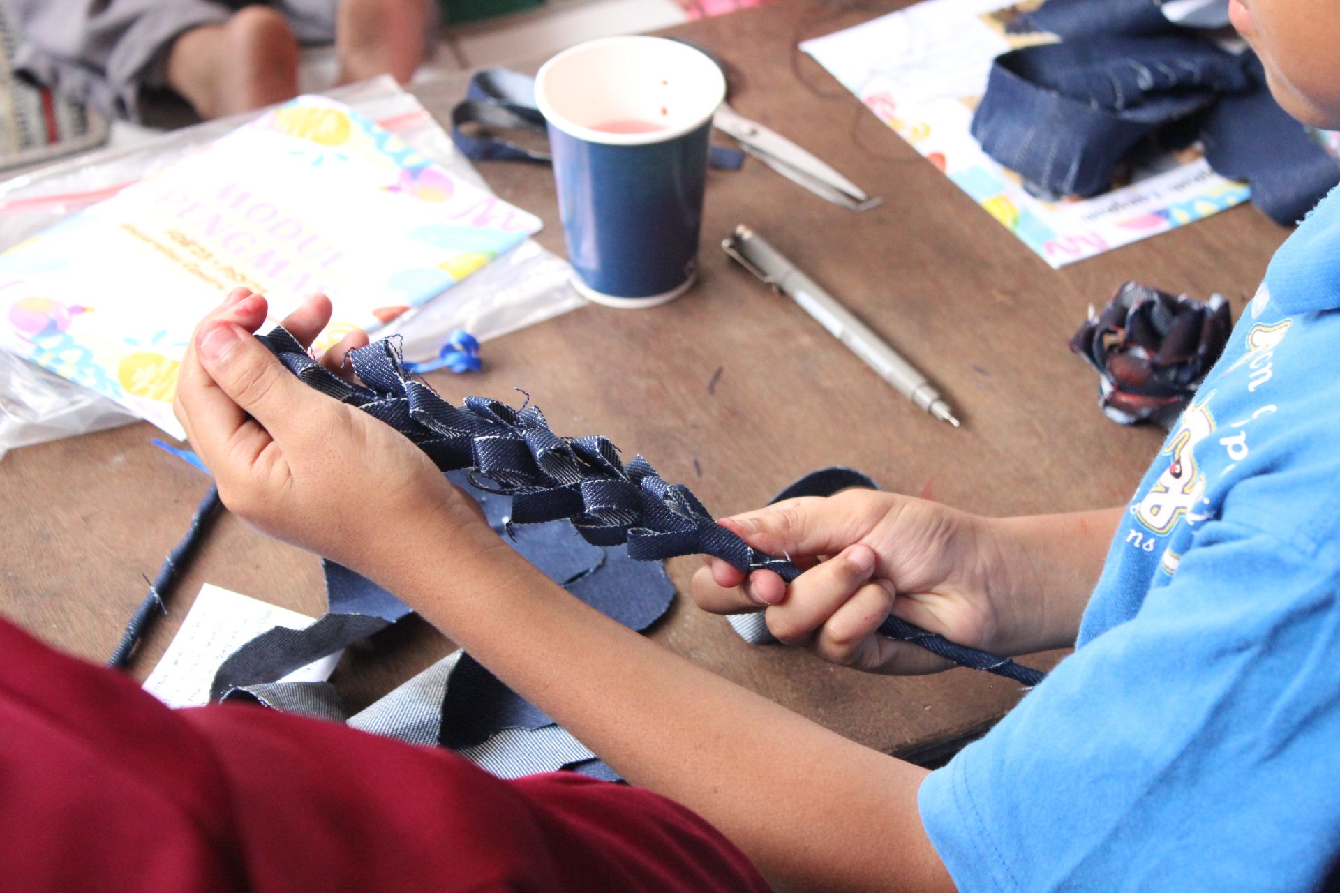 Kegiatan ini berfokus pada penyediaan limbah denim yang disalurkan oleh Duniatex kepada mahasiswa jurusan desain mode Universitas Ciputra. Mahasiswa dan staf pengajar kemudian memanfaatkan bahan ini dalam kegiatan pengabdian masyarakat di desa-desa sekitar Surabaya. Program ini melibatkan partisipasi aktif dari ibu rumah tangga dan anak-anak setempat, yang menjadi bagian dari proses kreatif dalam mengubah limbah denim menjadi produk yang bernilai.